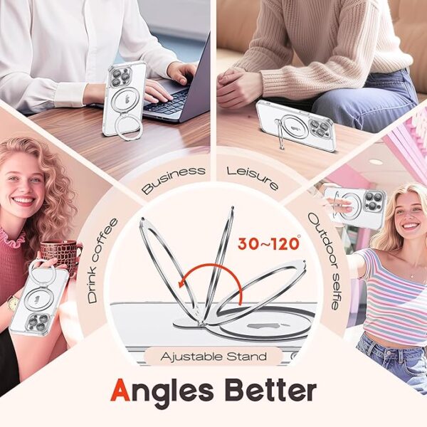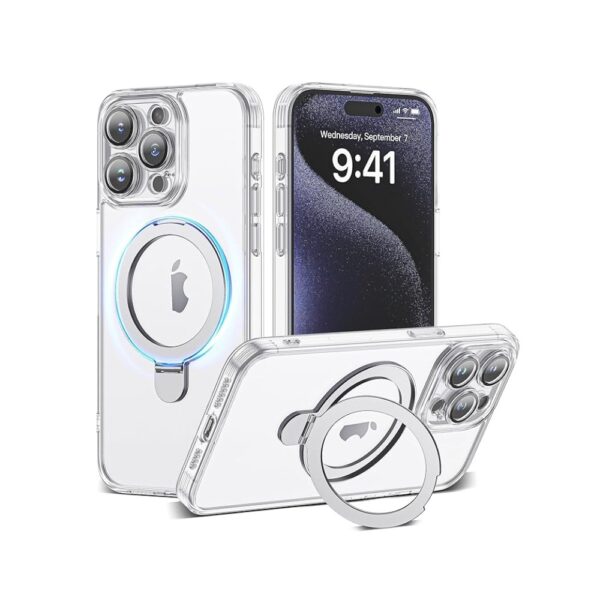 Mtyseeit Brand Clear iPhone 15 Case with Magnetic Stand Compatible with Mag-Safe Shockproof Phone Case